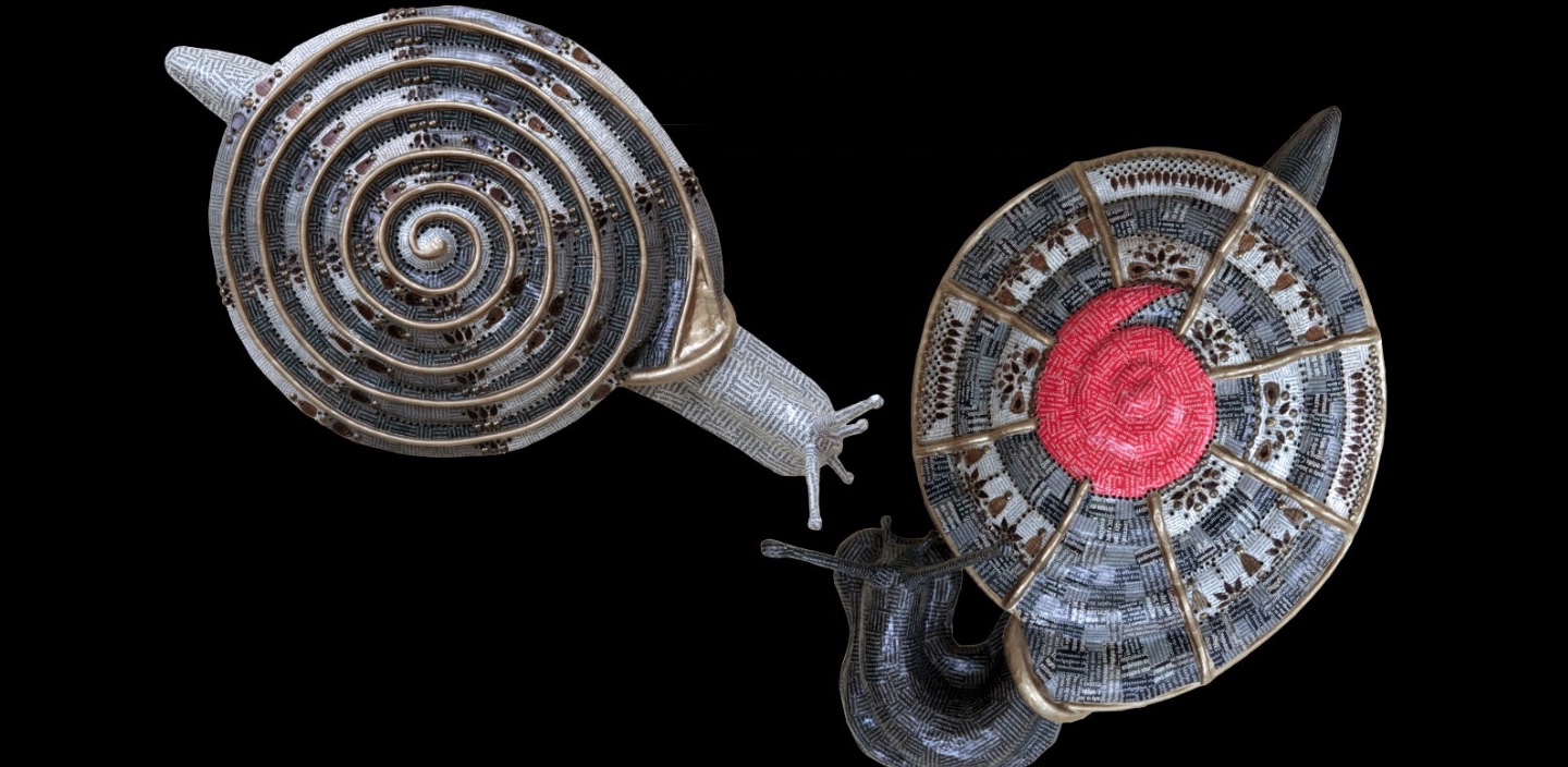 [μεσ’ από τη φωτοσκίαση στα ζωγραφικά έργα, τον τρόπο ψησίματος της κεραμικής ύλης, το ένθετο των ημιπολύτιμων λίθων, κ.α]: την τρίτη διάσταση ενισχύουν σε υπόσταση και σε οντότητα τις δημιουργίες του συνολικά θεωρημένες σε ένα και τον αυτό χώρο.