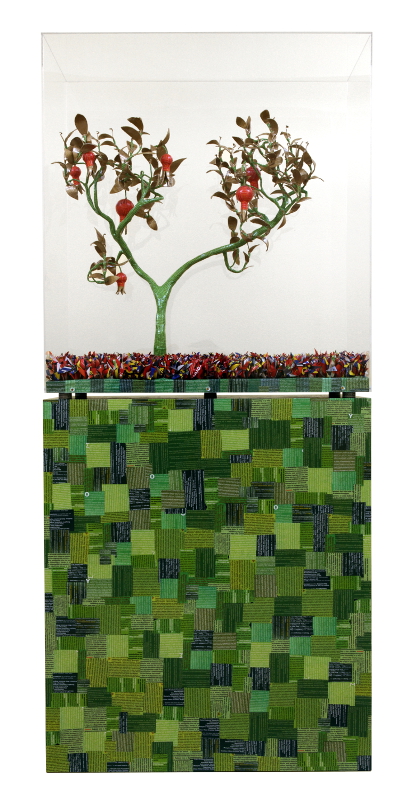 Brilliant both in quality and execution, the artist’s works are either constructed with tessera or ceramic matter through an inventive range of techniques, or finally with papiers collés. These artistic creations communicate on more than one wavelength, with the viewer charismatically expanding not only his visual perception but also the expanse of his soul. Furthermore, the inexhaustible solutions that the creator offers, as far as the projection and the recording of his works in space is concerned, highlight in inventive ways the third dimension [through the use of light and shade in his paintings, the way the ceramic matter is baked, the supplement of the inlaid semi-precious stones, etc.], reinforcing in essence and being both his art and his creations as a whole, and all within a single, unique space.